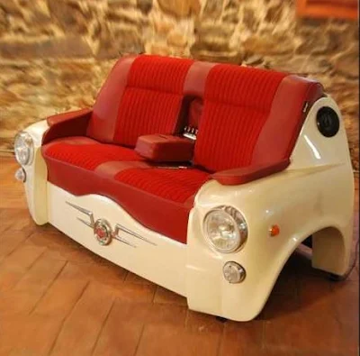 Adorei esse sofá 600, do estúdio de design espanhol Bel & Bel, esse com certeza estaria na minha lista do "Eu Quero". O sofá é feito lembrando os antigos veículos dos anos 60, ainda possui iluminação nos faróis, um mini bar e um mp3 player com caixas acústicas. Não é apenas um sofá, mas uma estação lounge em sua casa.