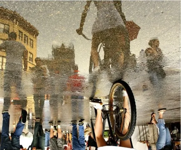 O fotógrafo nova-iorquino Ira Fox captura os momentos do dia-a-dia de uma maneira diferente, após a chuva, ele registra a movimentação da cidade nos reflexos de poças d´água que se formam na calçada, as imagens revelam um ângulo inusitado e efeitos incríveis.