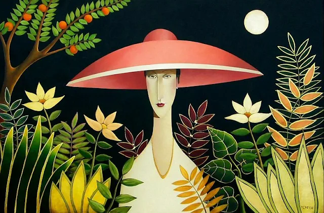 Ele é um artista autodidata, suas obras são marcadas pela presença de elegantes damas e seus chapéus sofisticados, suas mulheres de silhueta alongada lembram as telas de Modigliani.