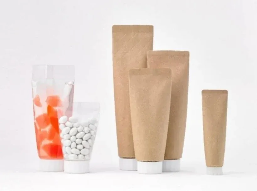 Toppan tem usado papel para o corpo do recipiente do tubo para reduzir a quantidade de plástico em 50%, enquanto é possível minimizá-lo ainda mais revisando as partes plásticas da cabeça. embora a quantidade de plástico utilizada possa diminuir, utilizando a rigidez do papel, uma forma firme pode ser mantida mesmo que o conteúdo diminua. além disso, o processo de dobrar o corpo em um envelope reduz a elasticidade ao agarrar o corpo, tornando o conteúdo mais fácil de espremer do que os tubos laminados convencionais. além disso, ao projetar horizontalmente a parte plástica do bico, em comparação com o tubo laminado convencional, é mais fácil espremer o conteúdo até o final.