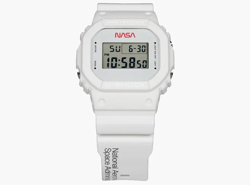 مايو 04, 2020Comemorando o aniversário das primeiras missões da Apolo, a Casio lançou uma edição limitada do tradicional relógio digital G-Shock em homenagem a NASA, o relógio é todo branco como o uniforme dos astronautas, possui a bandeira americana no detalhe do fecho, também possui o planeta Terra na parte traseira do relógio. Na escuridão, a luz do relógio revela a imagem da lua.